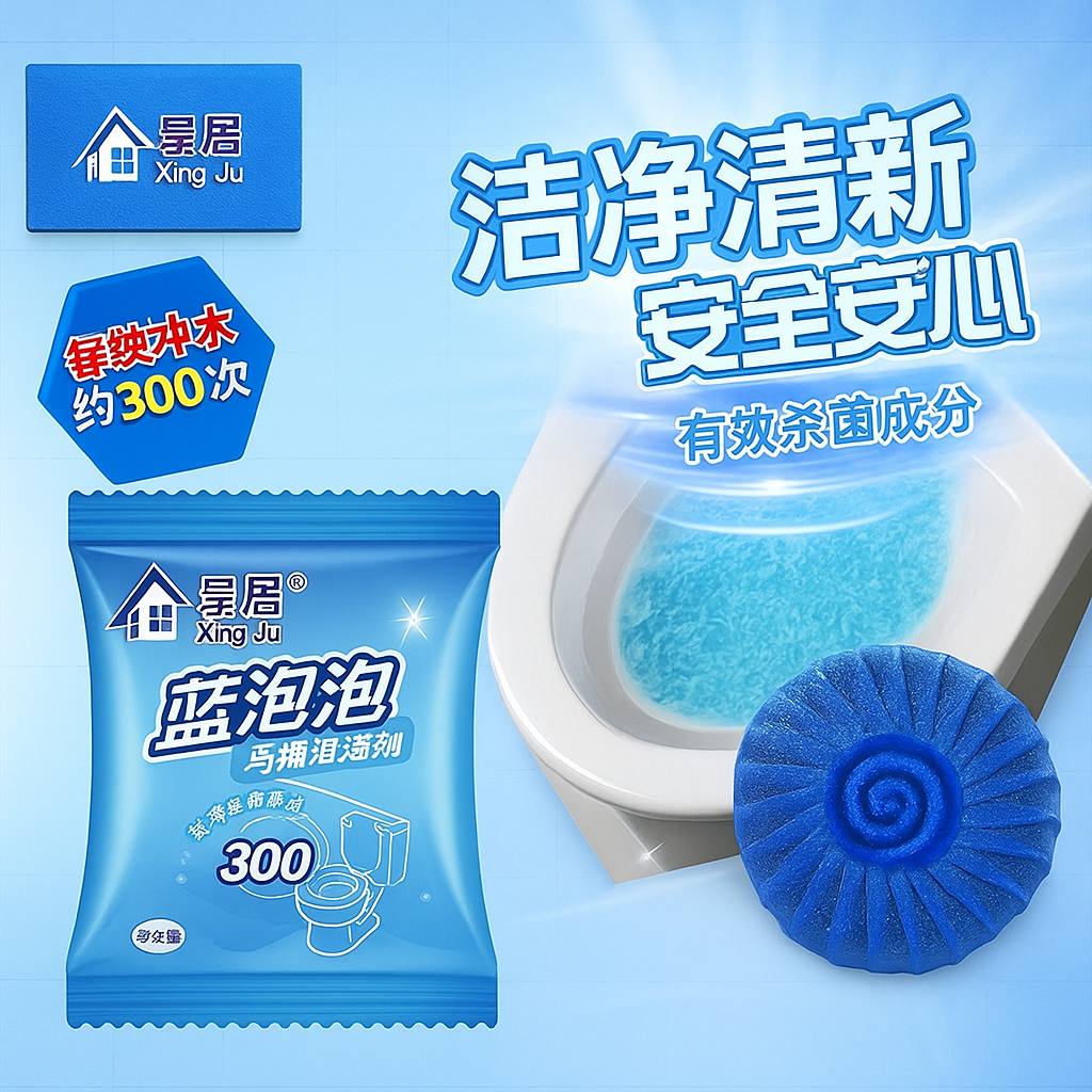 قرص تمیزکننده توالت آبی Xing Ju با اثر طولانی و ضدعفونی قوی