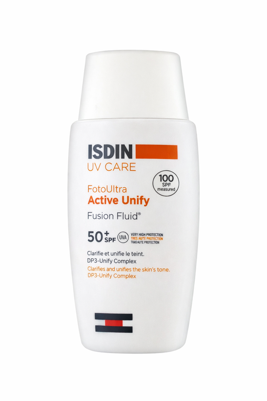ضد آفتاب تخصصی ایزدین Active Unify Fusion Fluid با SPF50+، کمک به کاهش و پیشگیری از لکهای پوستی و یکنواخت شدن رنگ پوست. فاقد رنگ و مناسب استفاده روزانه.