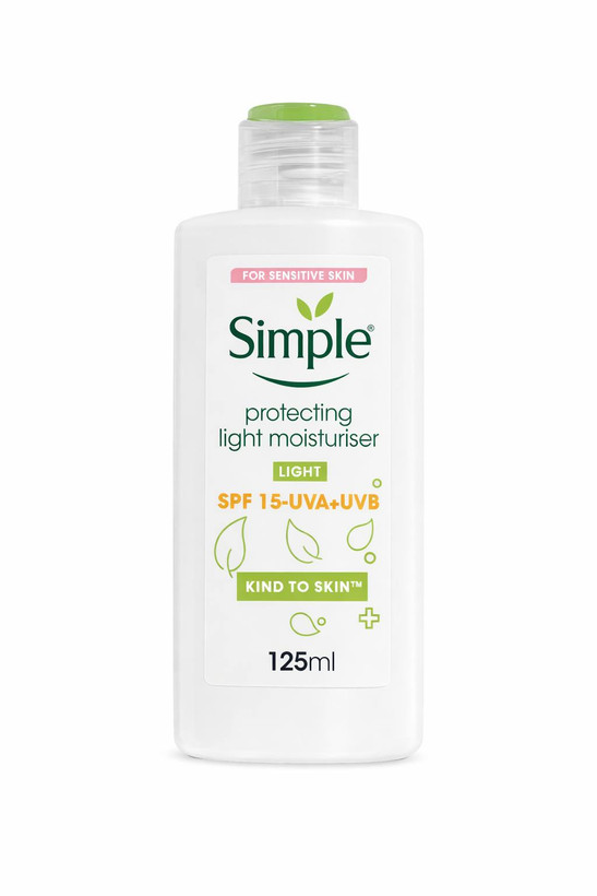 مرطوبکننده سبک Simple با SPF15، آبرسان روزانه و محافظت ملایم در برابر اشعههای UVA و UVB. مناسب پوستهای حساس و استفاده روزانه.